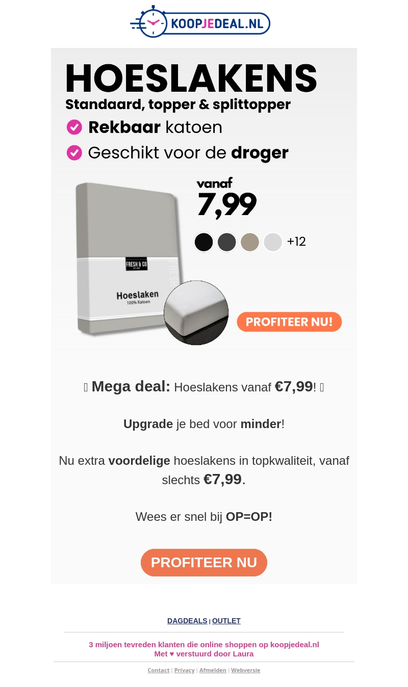 Ontdek onze geweldige aanbieding op hoeslakens van topkwaliteit vanaf slechts âŦ7,99. Upgrade je bed en geniet van maximaal comfort voor minder. Geschikt voor de droger en verkrijgbaar in verschillende kleuren. Wees er snel bij, want op=op! Mis deze kans niet en koop nu.