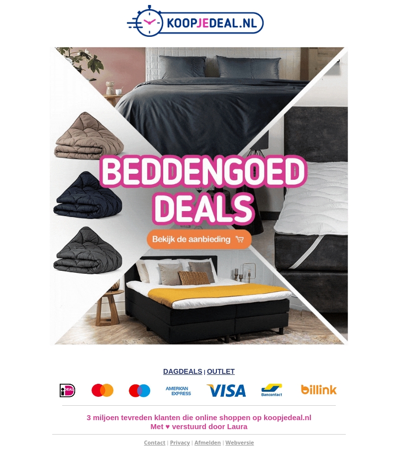 In deze nieuwsbrief presenteren we je de beste beddengoed deals van Koopjedeal.nl. Ontdek onze hoogwaardige dekbedden en matrassen met geweldige kortingen. Mis deze kans niet en maak je slaapkamer compleet! Klik nu om de aanbiedingen te bekijken.