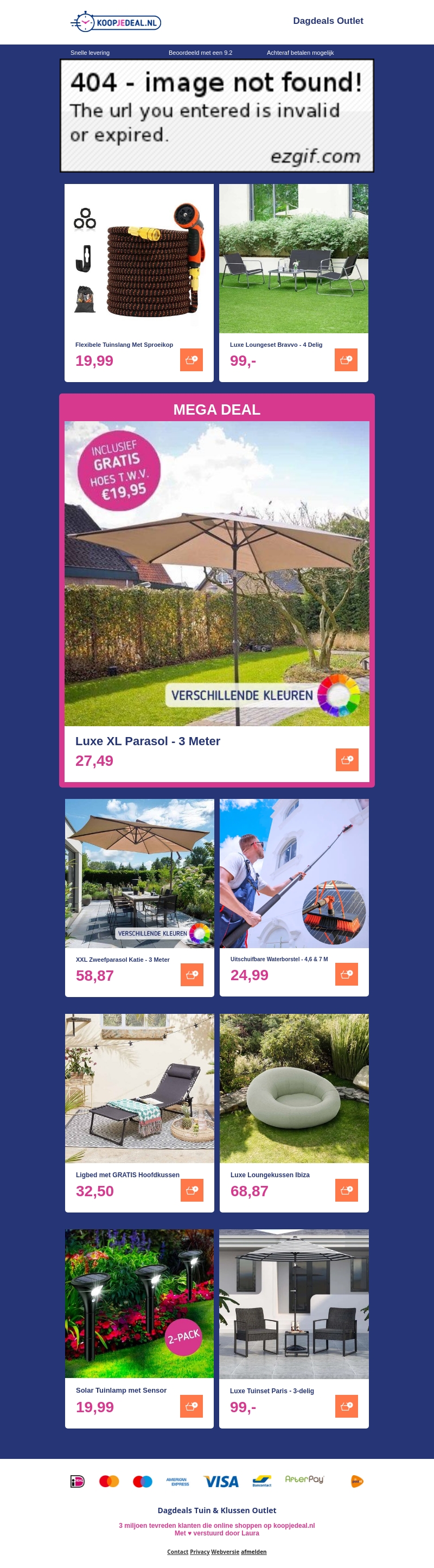 Mis de Mega Tuinuitverkoop niet! Ontdek een breed scala aan tuinartikelen zoals flexibele tuinslangen, luxe loungsets, parasols en meer. Profiteer van hoge kortingen en maak uw tuin klaar voor de zomer.