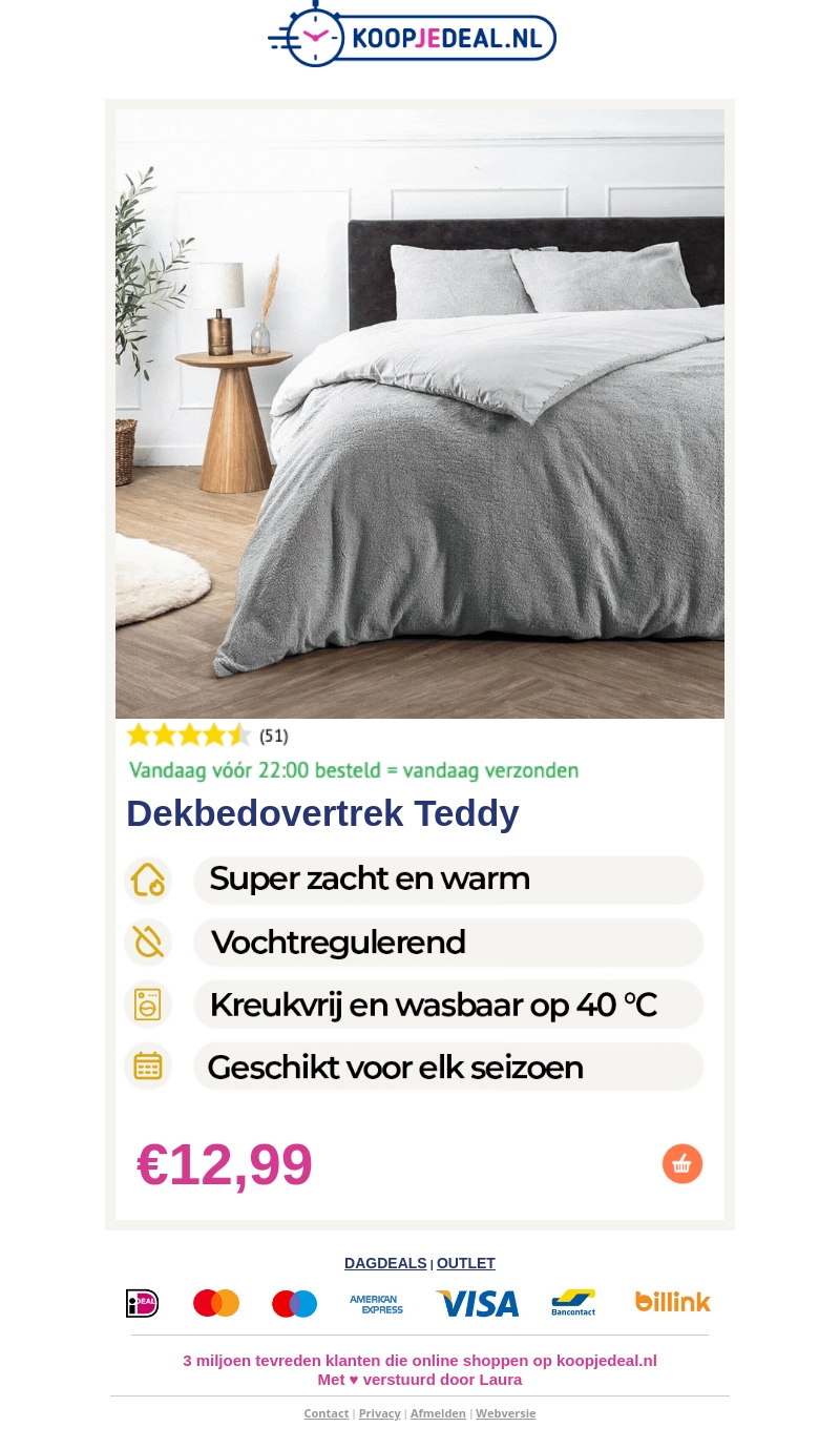 Duik in ultiem comfort met het Teddy dekbedovertrek. Het is super zacht, warm en vochtafstotend, waardoor het ideaal is voor elk seizoen. Dankzij de kreukvrije en wasbare stof is het zowel praktisch als stijlvol. Koop nu voor slechts €12,99 en ervaar de luxe van een perfecte nachtrust.