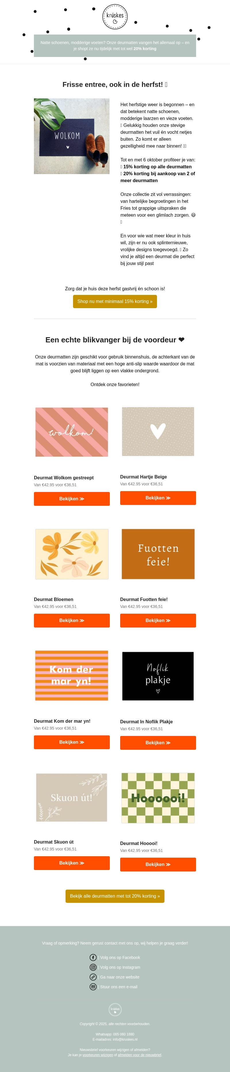 🍂 Actie: tot 20% korting op (nieuwe) deurmatten!