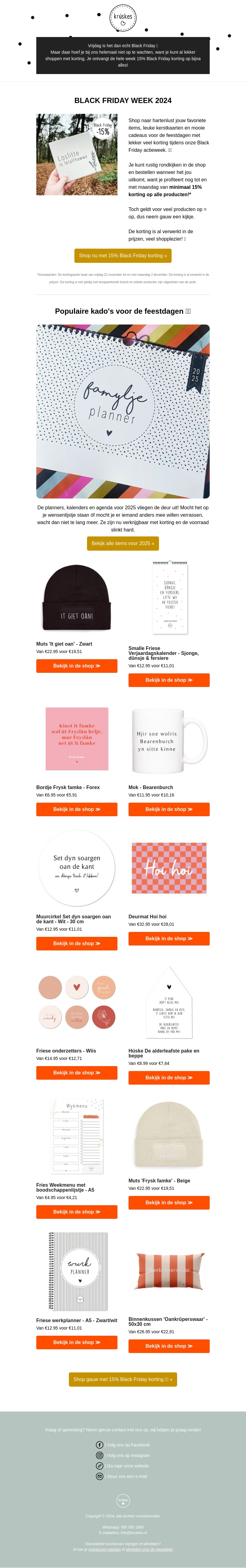 Bereid je voor op Black Friday 2024 met ongeëvenaarde kortingen op je favoriete items. Van exclusieve producten tot feestelijke cadeaus, er is voor ieder wat wils. Profiteer van 15% extra korting op geselecteerde items en maak je klaar om te shoppen! Ontdek de populairste cadeaus voor de feestdagen en geniet van geweldige deals.