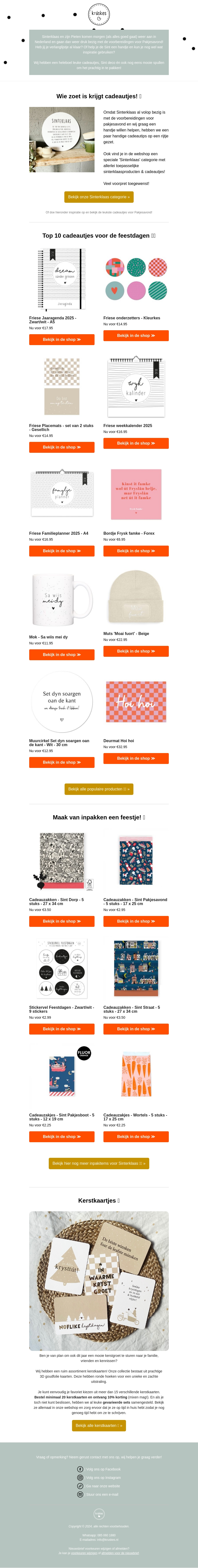 Sinterklaas is weer onderweg en dat betekent cadeautijd! Ontdek de beste cadeau-ideeën voor jong en oud. Van gepersonaliseerde items tot feestelijke verpakmaterialen. Maak elk geschenk speciaal en verspreid de vreugde van Sinterklaas.