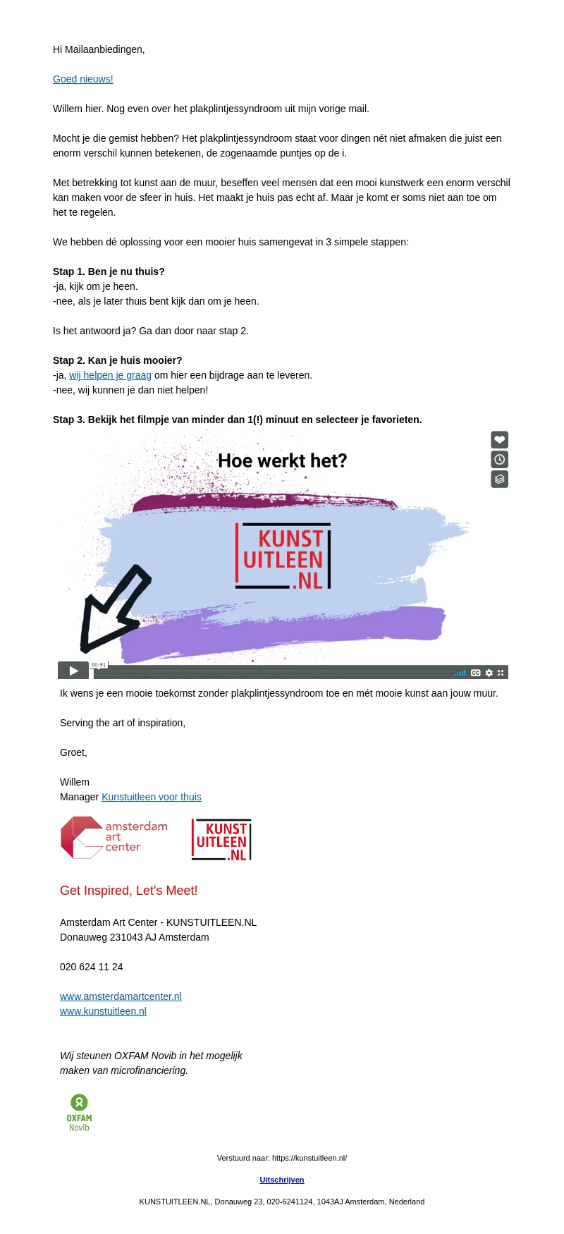 Willem bespreekt het fenomeen Plakplintjessyndroom en hoe een mooi kunstwerk aan de muur een enorm verschil kan maken voor de sfeer in huis. Ontdek in drie simpele stappen hoe je jouw huis kan verfraaien met kunst van Kunstuitleen.nl.
