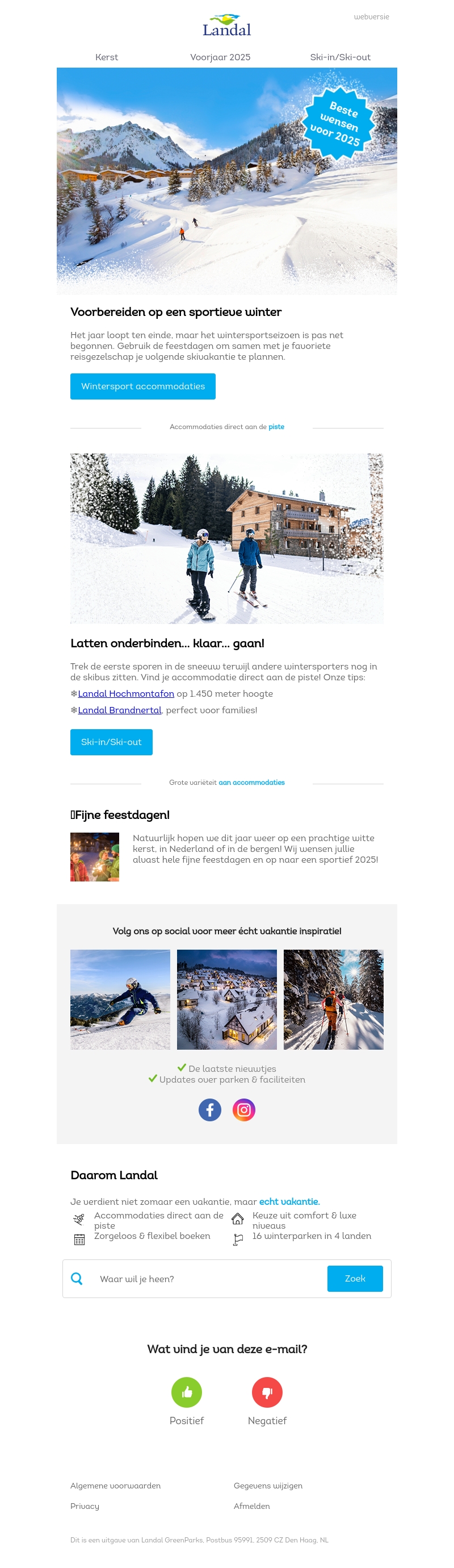Bereid je voor op een actieve winter met Landal. Of je nu op zoek bent naar avontuur of ontspanning, onze accommodaties aan de piste bieden de perfecte uitvalsbasis. Ontsnap aan de drukte en geniet van direct toegang tot de pistes. Ideaal voor gezinnen en vrienden om de feestdagen door te brengen. Maak herinneringen die blijven met een sportieve start van 2025.