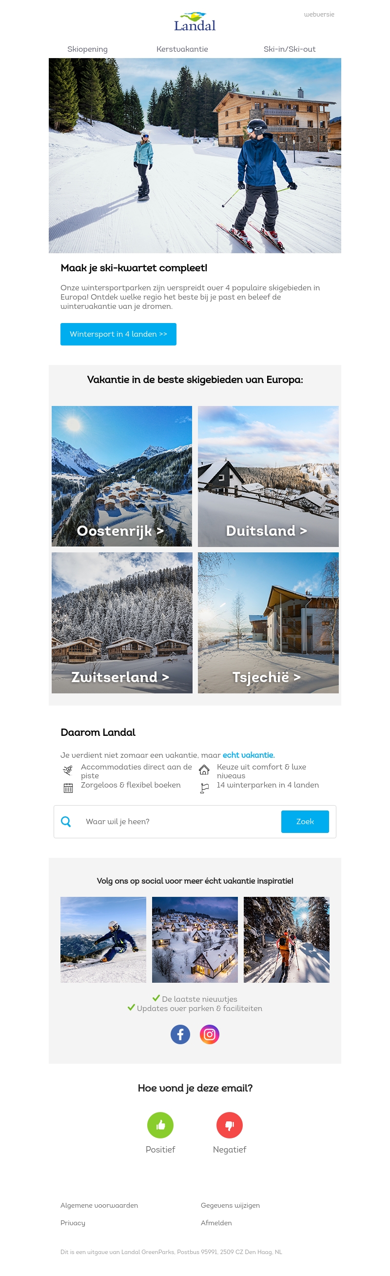Ervaar de ultieme wintersport in vier adembenemende skigebieden: Oostenrijk, Duitsland, Zwitserland en Tsjechië. Kies voor comfort en luxe in onze accommodaties direct aan de piste. Ontvang updates over de laatste parken en faciliteiten, en plan je perfecte sneeuwvakantie.