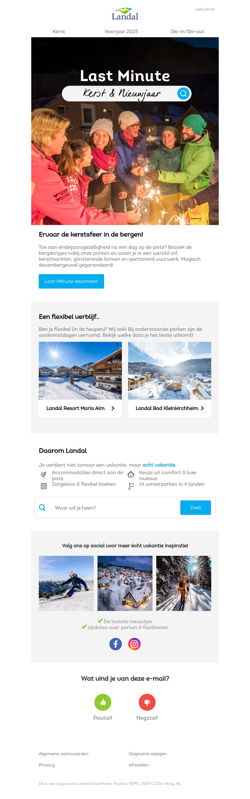 Ontsnap naar de bergen en ervaar de feestelijke kerstsfeer met Landal. Bezoek charmante bergdorpjes en geniet van kerstmarkten, fonkelende bomen en spectaculair vuurwerk. Deze nieuwsbrief biedt flexibele verblijfsopties in onze winterparken.