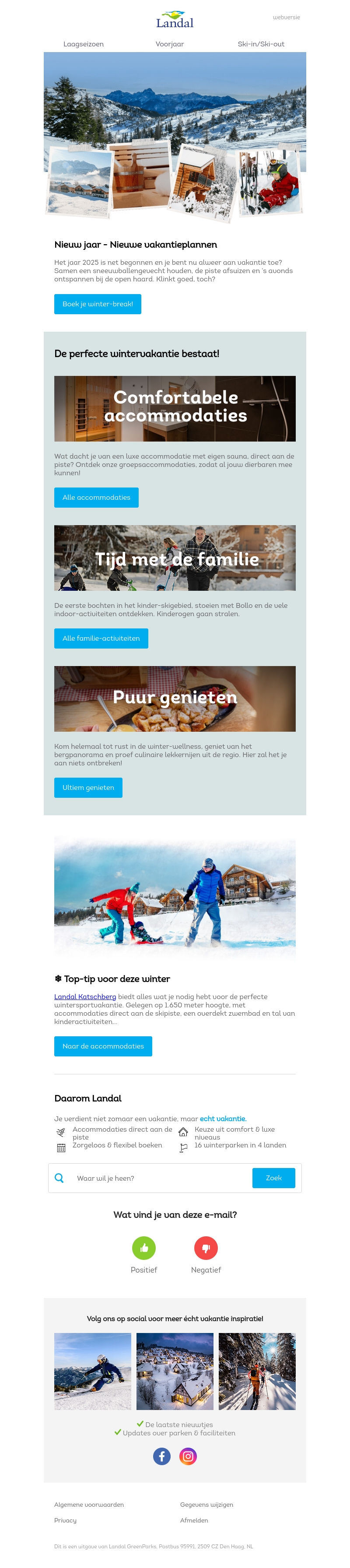 Het nieuwe jaar is begonnen en het is tijd om uw vakantieplannen te maken. Ontdek luxe accommodaties met eigen sauna's en ski-in/ski-out mogelijkheden. Geniet van gezinsactiviteiten en pure ontspanning. Boek nu uw winterbreak en ervaar het beste van wat Landal biedt!