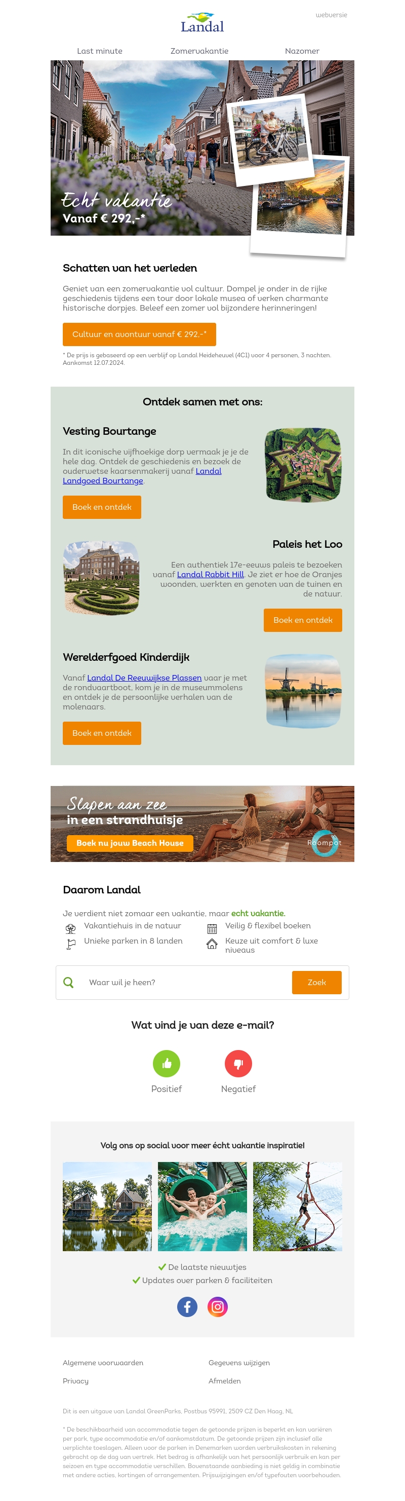 Ga op ontdekkingsreis met Landal en beleef een zomer vol cultuur en avontuur. Bezoek Vesting Bourtange, Paleis het Loo en Werelderfgoed Kinderdijk. Ervaar de rijke geschiedenis en maak onvergetelijke herinneringen.