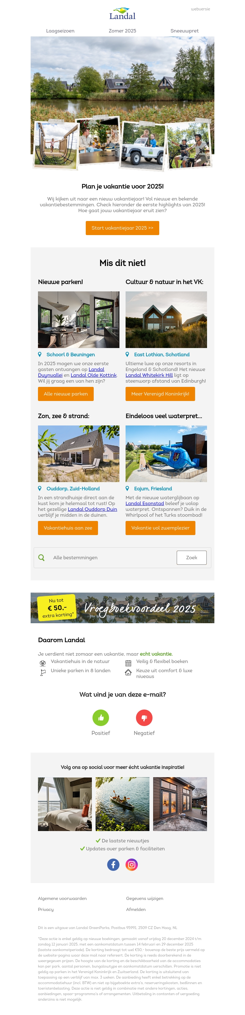 Geniet van een voorproefje van wat Landal in 2025 te bieden heeft. Verken nieuwe vakantieparken en bestemmingen, van serene kustlijnen tot schilderachtige natuurgebieden in Engeland en Schotland. Profiteer nu van vroegboekkortingen en plan je ideale vakantieavontuur.