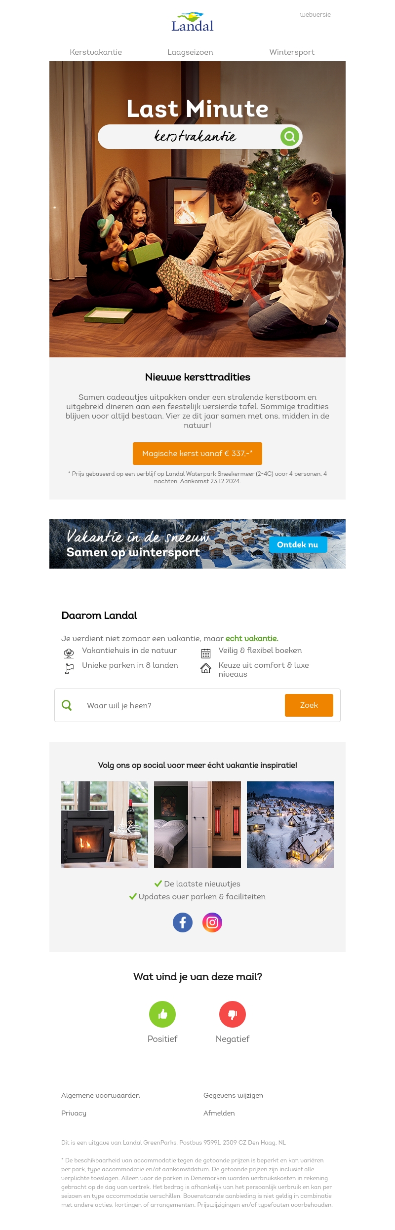 Breng je kerst door in een sfeer van magie en gezelligheid vanaf slechts € 337,-. Geniet van nieuwe kersttradities te midden van de natuur met familie en vrienden. Ervaar het comfort en de luxe van onze unieke vakantiewoningen. Boek nu je onvergetelijke kerstvakantie bij Landal. Laat je inspireren en ontdek de mooiste vakantiehuisjes voor deze feestelijke periode.