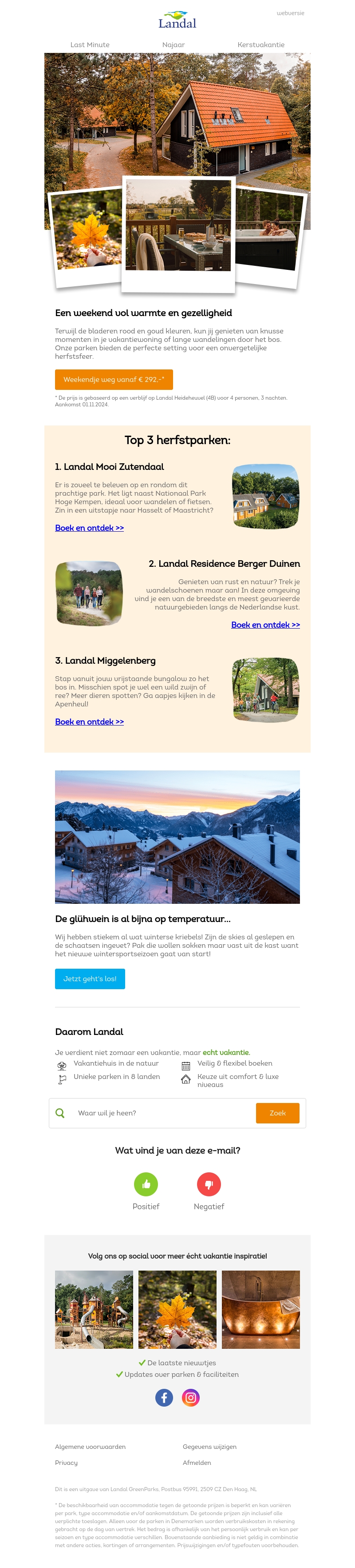 Terug naar de natuur bij Landal's herfstparken! Geniet van de gouden bladeren, wandelingen en nog veel meer. Ontdek de top 3 herfstparken en bereid je alvast voor op de winter. Boek nu!