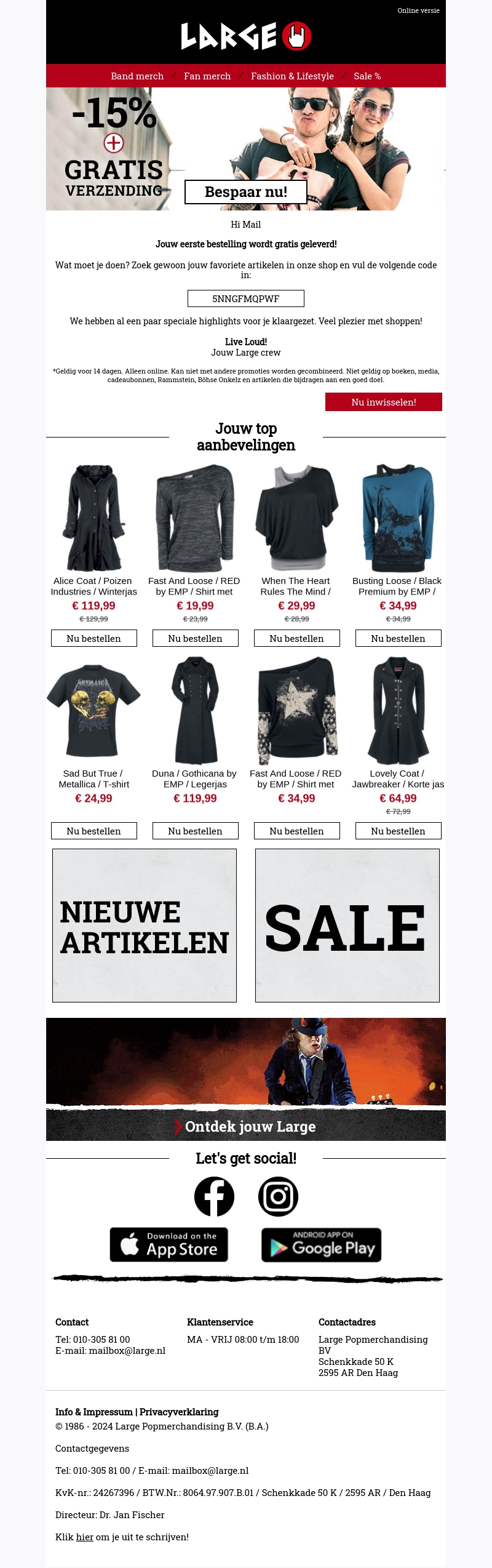 Ontvang gratis verzending op je eerste bestelling bij Large! Gebruik de code en krijg direct korting. Ontdek onze topaanbevelingen en bespaar op jouw favoriete artikelen. Bekijk ook de nieuwste artikelen van je favoriete merken. Wacht niet langer en shop nu met voordeel!