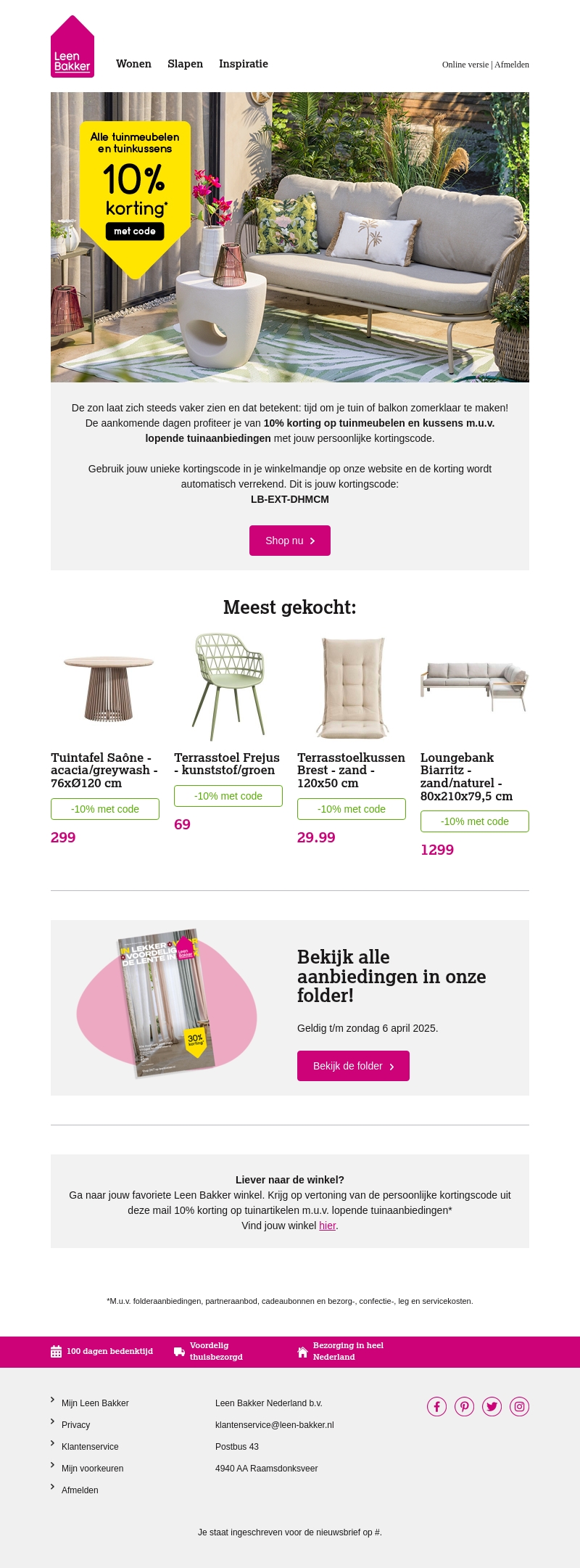 10% korting op alle tuinmeubelen en tuinkussens!