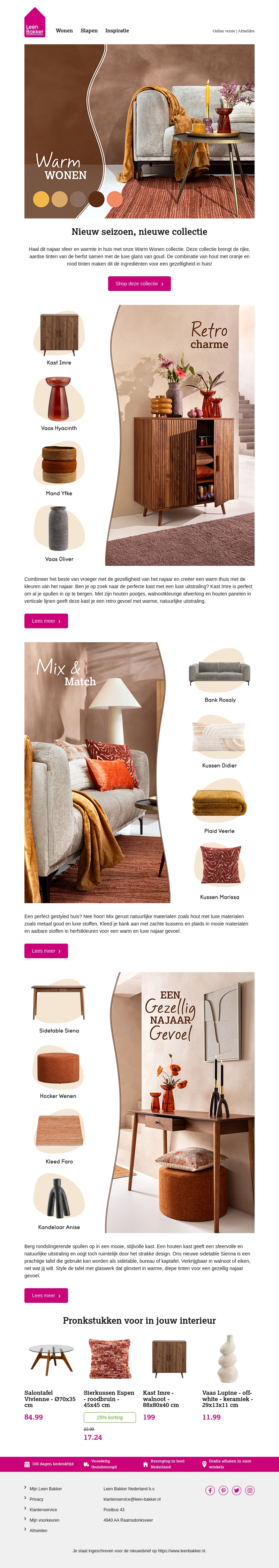 Haal dit najaar sfeer en warmte in huis met onze Warm Wonen collectie. Maak kennis met de nieuwste trends en musthaves voor een stijlvol en gezellig interieur. Ontdek retro charme met de mooiste vazen, manden en kasten. Vind de perfecte mix & match items voor jouw woonkamer.