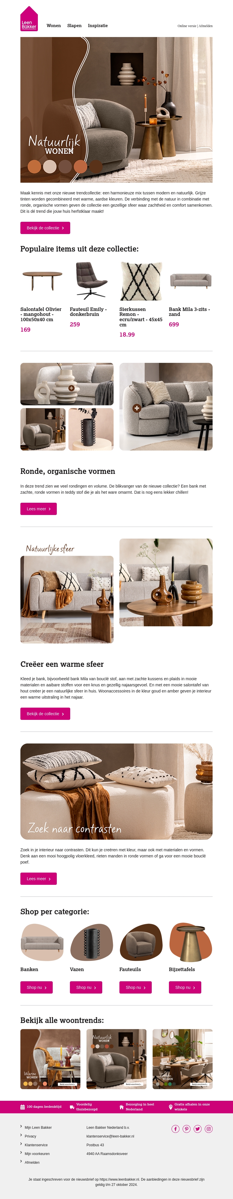 Maak je interieur herfstklaar met de nieuwste woontrends. Ontdek natuurlijke kleuren, organische vormen en warme stoffen die je huis comfort en sfeer geven. Van zachte banken tot stijlvolle accessoires, je vindt alles om een harmonieuze sfeer te creΓ«ren. Bezoek de collectie en geniet van een herfstachtige ambiance.