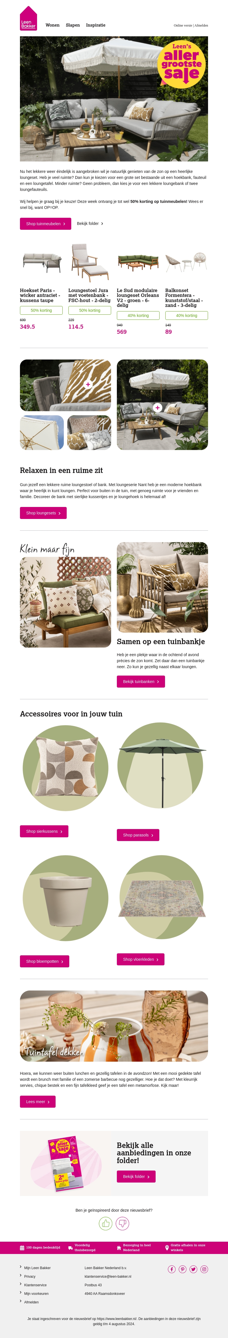 Leen Bakker presenteert de grootste sale met prachtige loungesets en accessoires. Kies uit verschillende stijlen en profiteer deze week van 50% korting op geselecteerde items. Los nog meer voordelen met Leen Bakker's exclusieve deals!