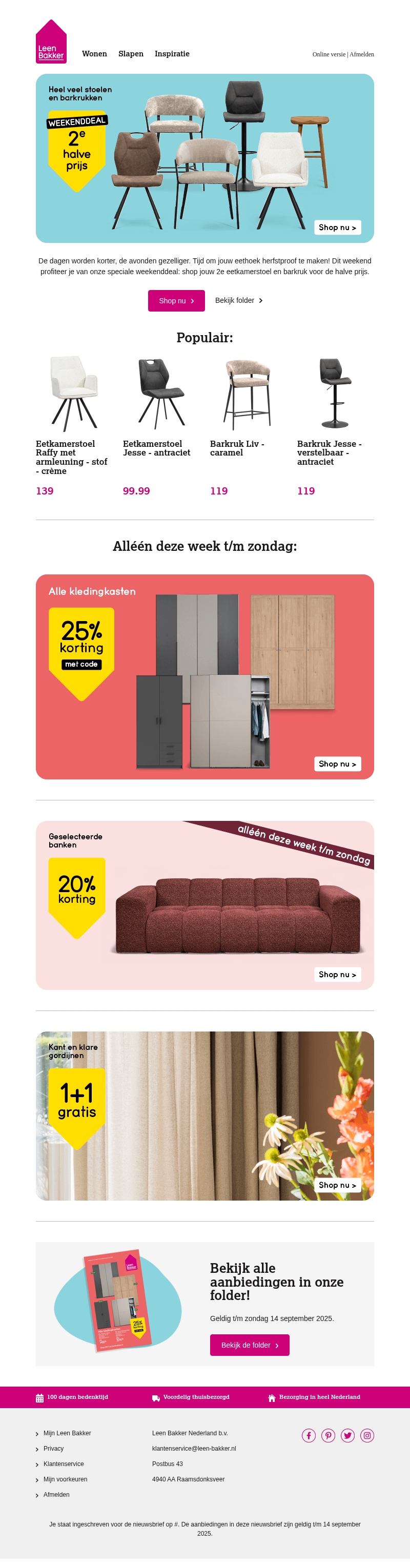 Weekenddeal: 2e stoel voor halve prijs.