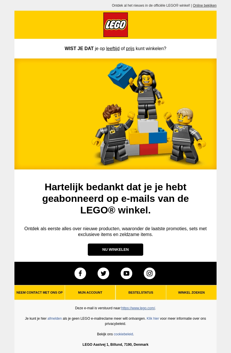 Bedankt voor je aanmelding bij de LEGO® winkel. Ontvang de nieuwste productupdates, exclusieve promoties en zeldzame verzamelobjecten direct in je inbox.