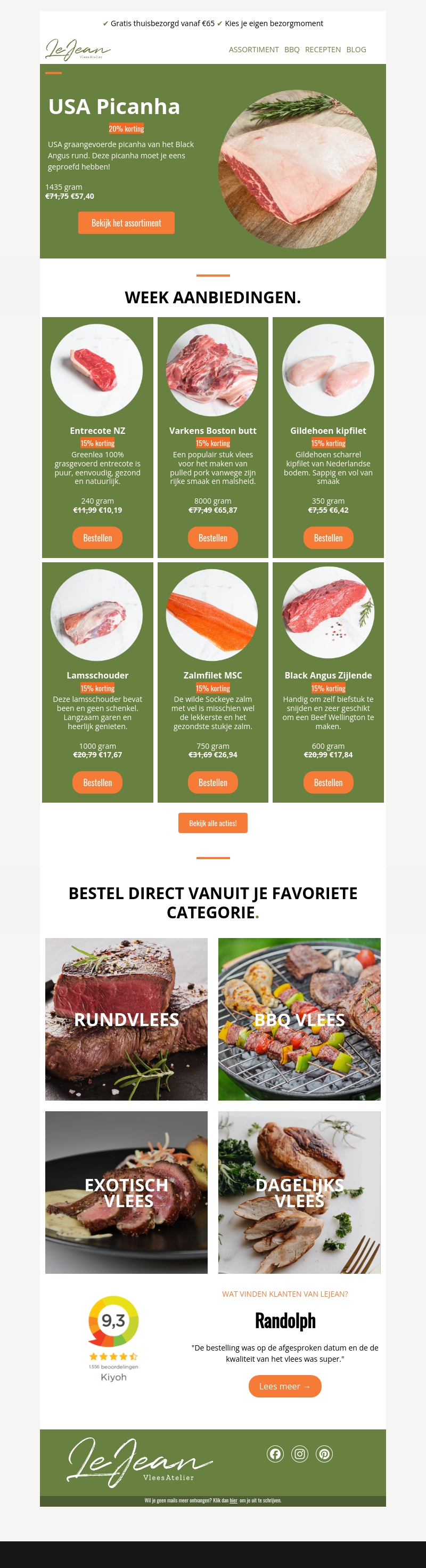 Ontvang nu 20% korting op USA picanha van LeJean. Deze Black Angus picanha van graangevoerd rundvlees is een must-have voor iedere vleesliefhebber. Bestel direct eenvoudig en snel vanaf €65 gratis thuisbezorgd.