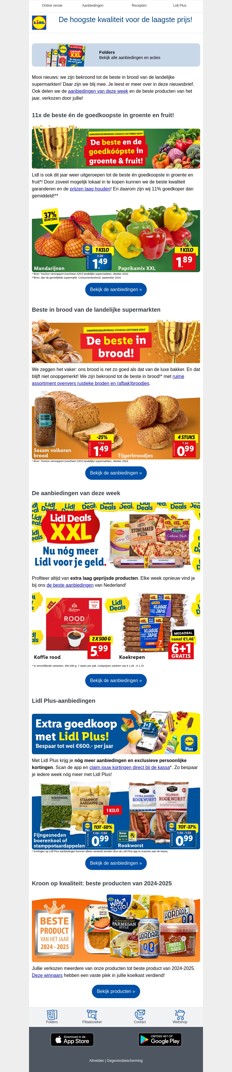 Deze nieuwsbrief van Lidl toont de beste aanbiedingen op groenten, fruit, en brood in landelijke supermarkten. Geniet van de topkwaliteit producten tegen lage prijzen. Lidl biedt extra kortingen via de Lidl Plus-app. Verlies geen tijd, kijk snel naar de mooiste deals van deze week en bespaar meer met Lidl Plus.