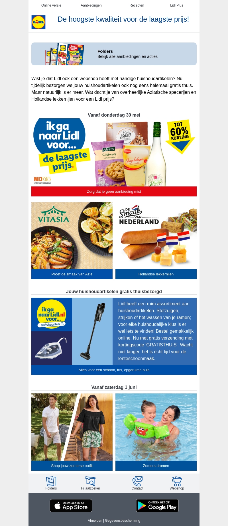 De Lidl-webshop heeft nu een ruim assortiment aan huishoudartikelen die je gratis thuis kunt laten bezorgen. Ontdek heerlijke Aziatische specerijen en Hollandse lekkernijen voor een Lidl-prijs. Gebruik de kortingscode 'GRATISTHUIS' voor gratis verzending. Mis deze kans niet op fantastische aanbiedingen!