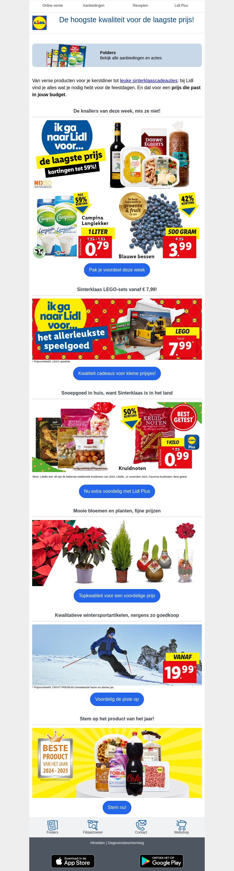 Deze week biedt Lidl geweldige aanbiedingen met kortingen tot 59%. Vind het perfecte Sinterklaascadeau, van LEGO-sets tot smakelijke kruidnoten. Of je nu op zoek bent naar kwaliteitsbloemen, winterartikelen of dagelijkse boodschappen, Lidl heeft het allemaal voor lage prijzen.