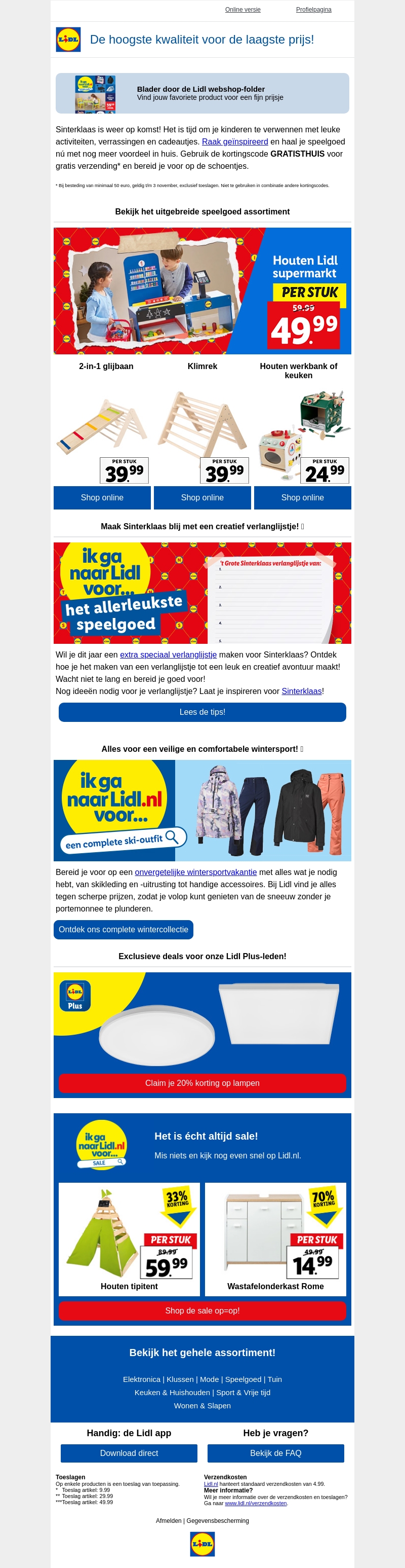 Sinterklaas is op komst en Lidl helpt je om de leukste cadeaus tegen geweldige prijzen te vinden. Geniet van een uitgebreid assortiment speelgoed en bereid je voor op de feestdagen met gratis verzending. Doe inspiratie op voor je verlanglijst en maak Sinterklaas onvergetelijk.