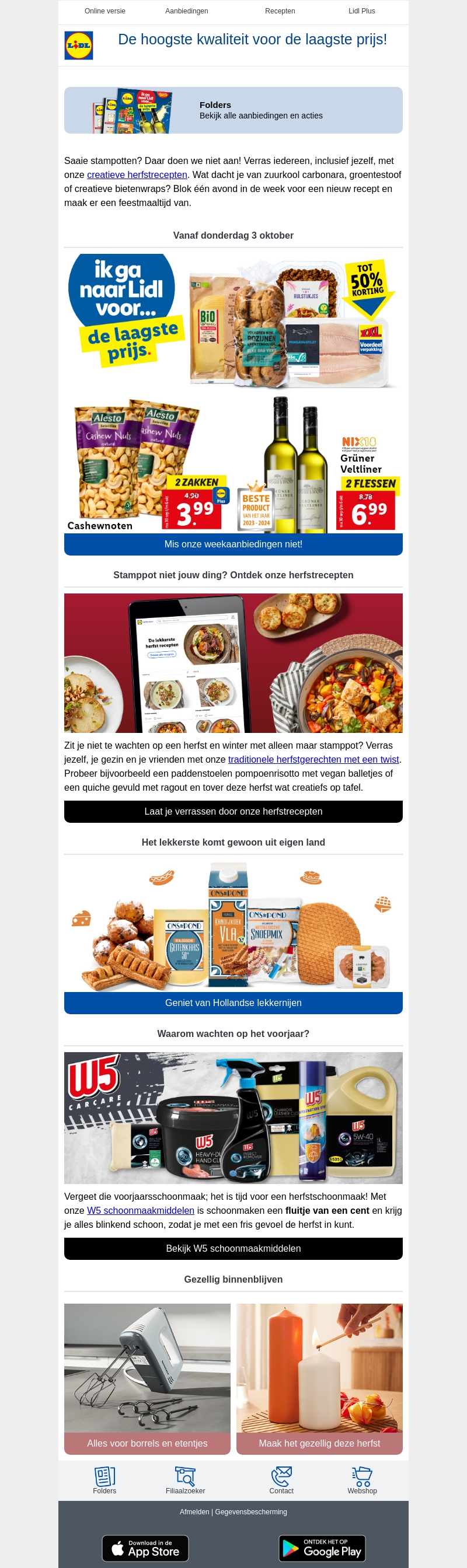 Ben je klaar met de saaie stamppotten? Ontdek onze creatieve herfstgerechten zoals zuurkool carbonara en bietentwraps. Mis ook onze geweldige wekelaanbiedingen niet, waaronder kortingen op cashewnoten en wijn. Maak je klaar voor een smaakvolle herfst!