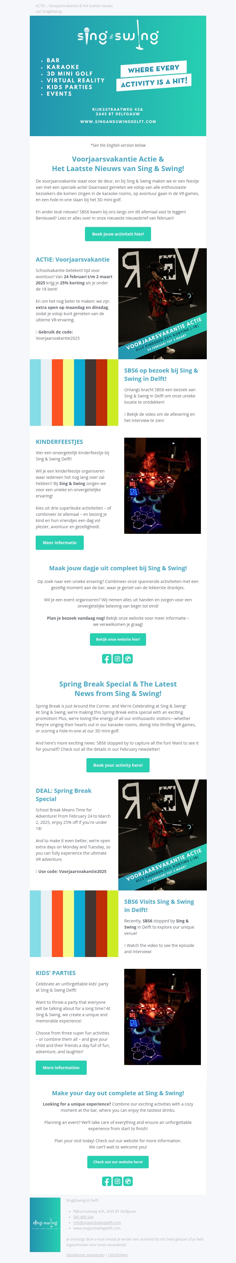 ACTIE... Voorjaarsvakantie & het laatste nieuws van Sing&Swing