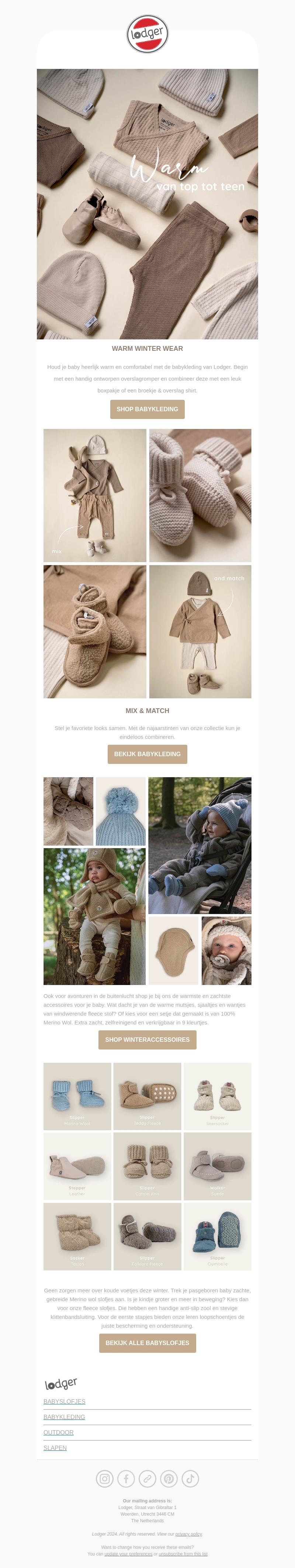 Houd je baby warm en comfortabel met de nieuwste collectie van Lodger. Ontdek schattige combinaties voor zowel binnen als buiten. Met zachte mutsjes, slofjes en meer, blijft je kleintje stijlvol en warm. Bekijk onze duurzame producten van 100% Merino wol.