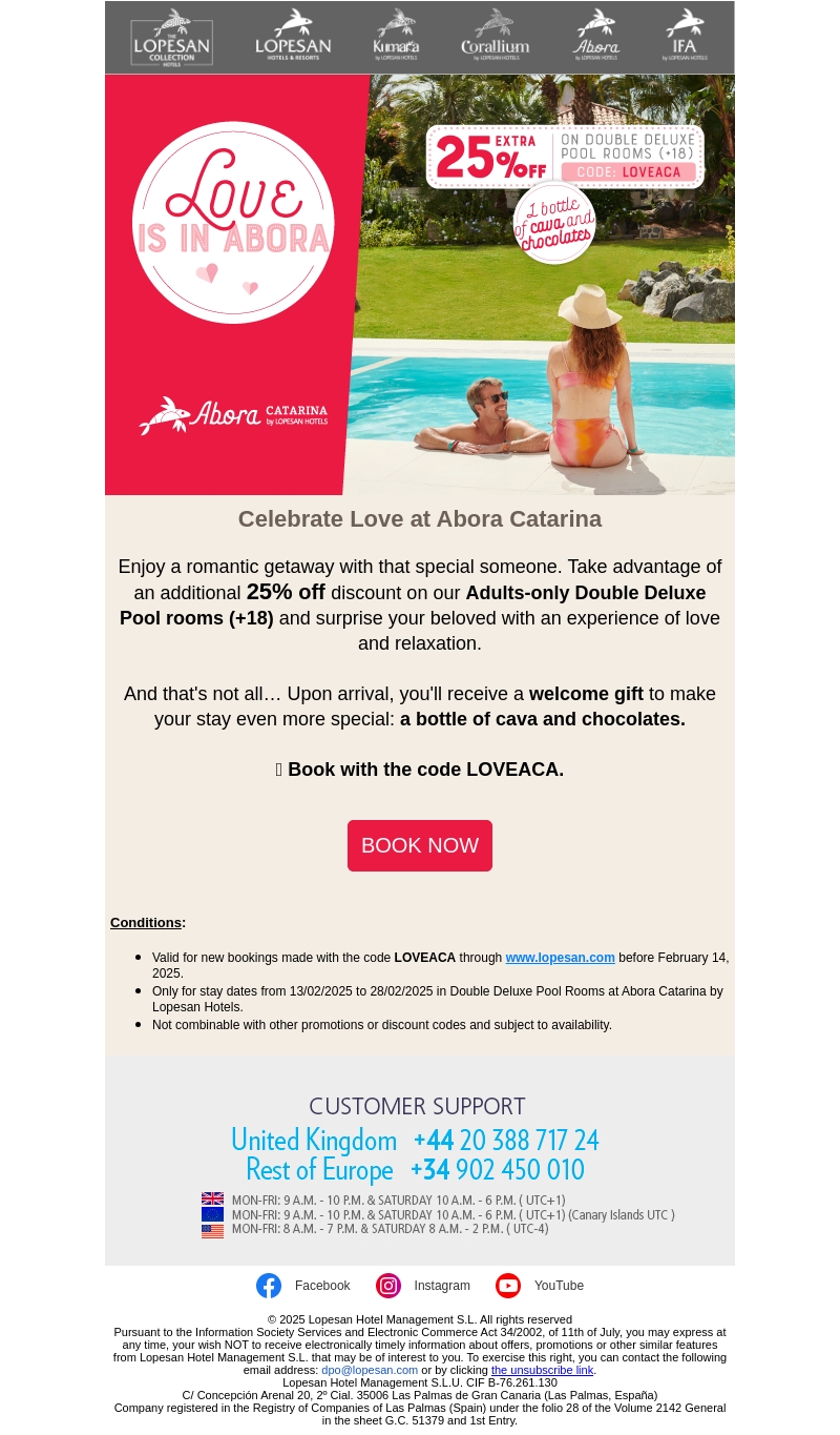 Geniet van een romantisch verblijf bij Abora Catarina met een speciale 25% korting op volwassene-only Deluxe Pool kamers. Daarnaast ontvangt u een fles cava en chocolade als welkomstcadeau. Mis deze unieke kans niet om uw geliefde te verrassen.