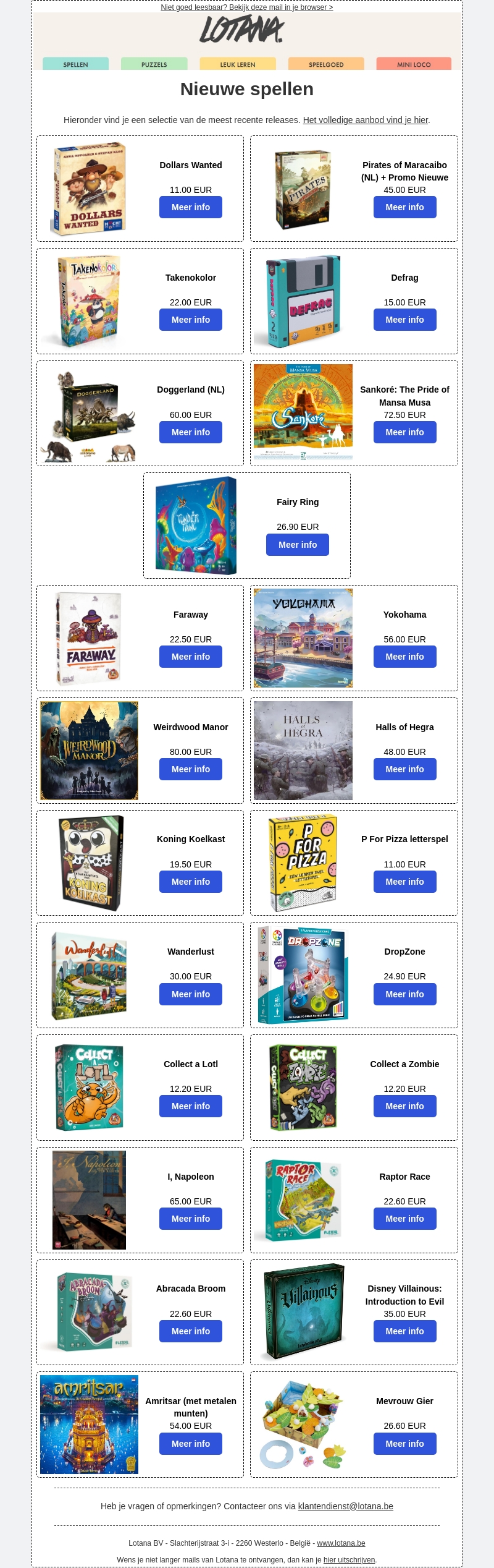 Verwelkom de herfst met de nieuwste releases van Lotana. Deze maand introduceren wij spannende spellen zoals Takenokolor, Yokohama en Fairy Ring. Elk spel biedt unieke avonturen en uitdagingen voor jou en je vrienden. Lees verder voor meer details en exclusieve aanbiedingen.