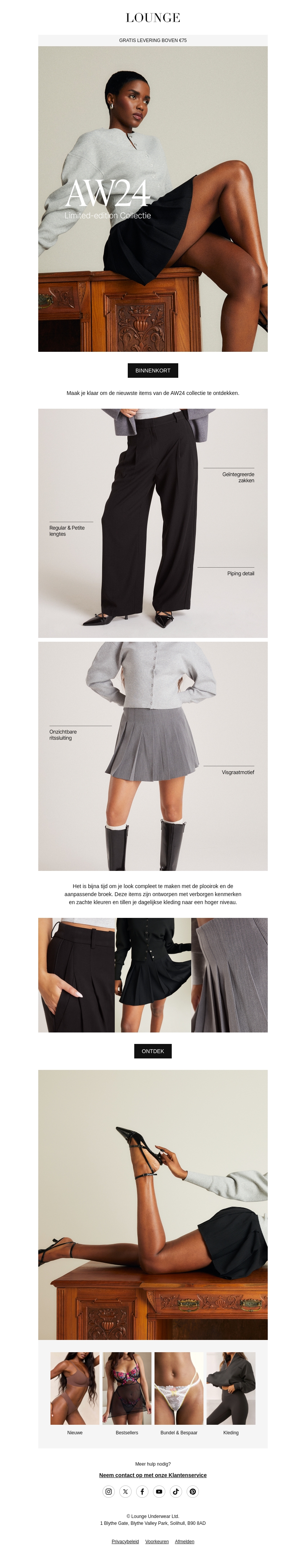 Bekijk de nieuwste modecollectie AW24 met exclusieve items. Ontdek elegante stijlen die perfect passen bij elke gelegenheid. Geniet van gratis levering bij bestellingen boven €75 en maak je look compleet met onze unieke kledingstukken. Shop nu en blijf stijlvol in het komende seizoen. Kies uit verfijnde tops en comfortabele onderkleding. Doe mee aan de fashion trend van dit najaar.