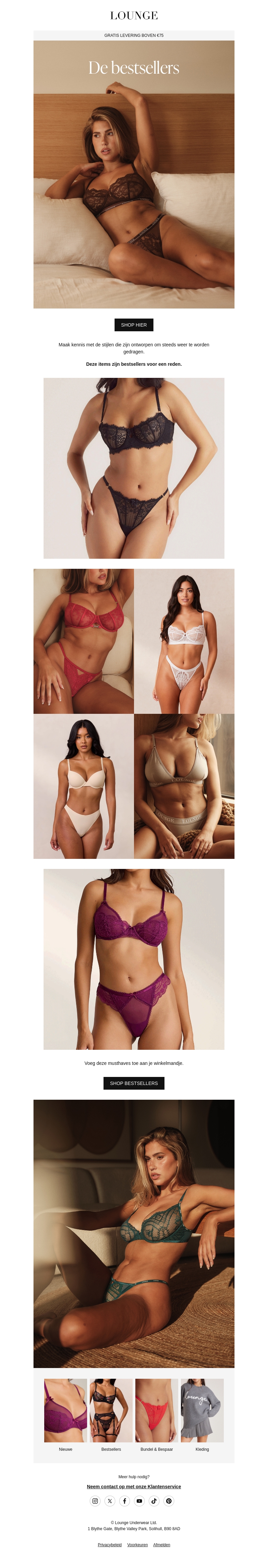 Duik in de wereld van luxe lingerie met de bestsellers van Lounge. Ontdek stijlvolle en comfortabele stukken die je zelfvertrouwen een boost geven. Ontdek je favoriete set en voeg een vleugje elegantie toe aan je garderobe. Ga voor verfijnde patronen en hoogwaardige materialen. Verras jezelf of een speciaal iemand met deze prachtige items. Shop nu en ervaar de luxe.
