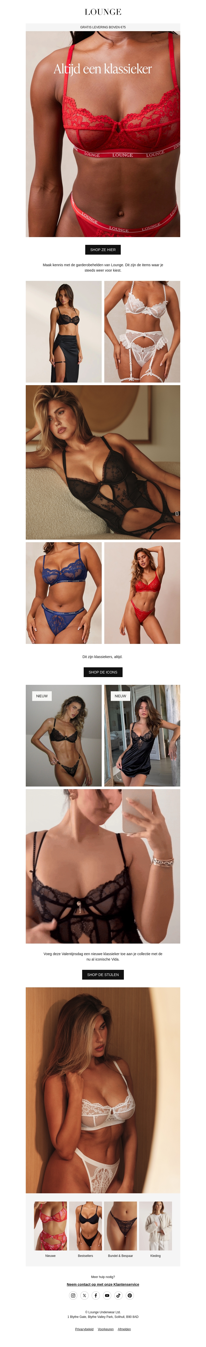 In deze nieuwsbrief presenteert Lounge haar prachtige lingeriecollectie die klassieke elegantie en moderne stijl combineert. Ontdek verleidelijke ontwerpen in rood, zwart en wit die geschikt zijn voor elke gelegenheid. Of je nu op zoek bent naar comfort of allure, Lounge biedt jou de perfecte keuze. Duik in hun selectie en vind je nieuwe favoriet. Shop nu voor een sensuele en stijlvolle uitstraling. Mis deze kans niet om je lingerie collectie te vernieuwen.