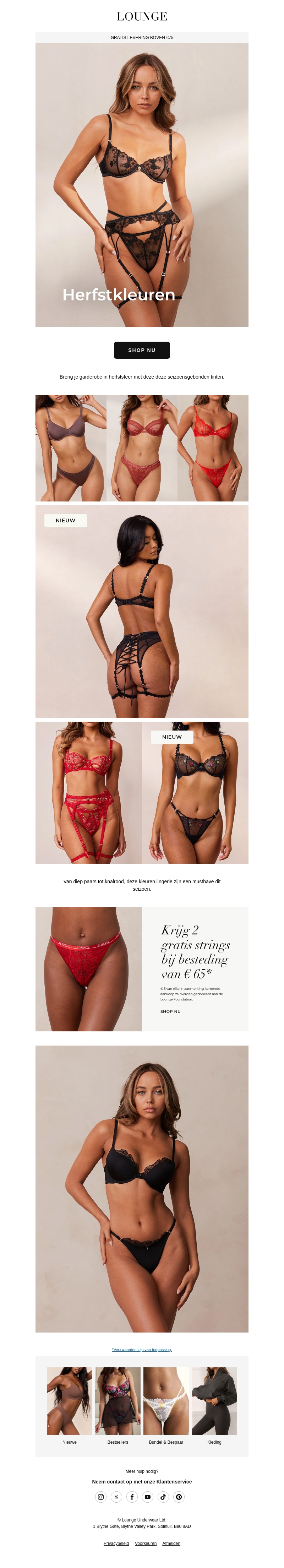 Verwen jezelf deze herfst met prachtige lingerie in warme kleuren. De collectie biedt veelzijdige stijlen, van diep paars tot rood. Mis de kans niet om je collectie uit te breiden met deze must-haves van het seizoen.