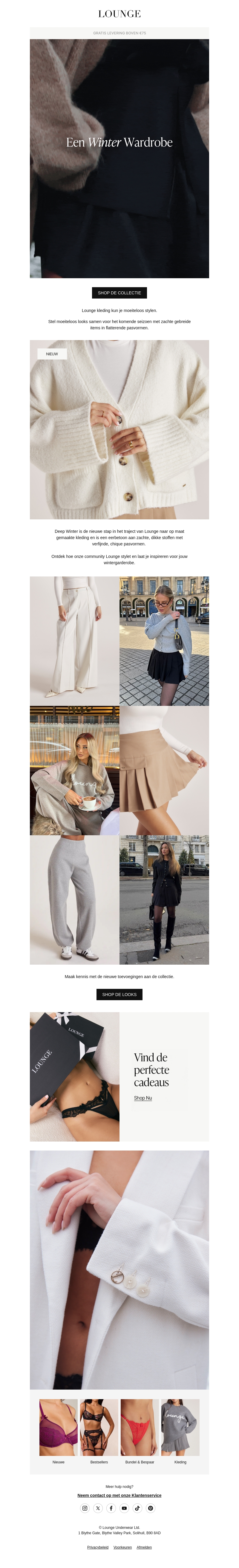 Lounge presenteert een elegante collectie om je wintergarderobe aan te vullen. Ontdek zachte truien, comfortabele broeken en stijlvolle jackets die perfect zijn voor de koudere maanden. Perfect voor zowel casual als chique gelegenheden. Shop nu de favorieten en blijf warm met stijl. Mis de kans niet om de perfecte look te vinden.