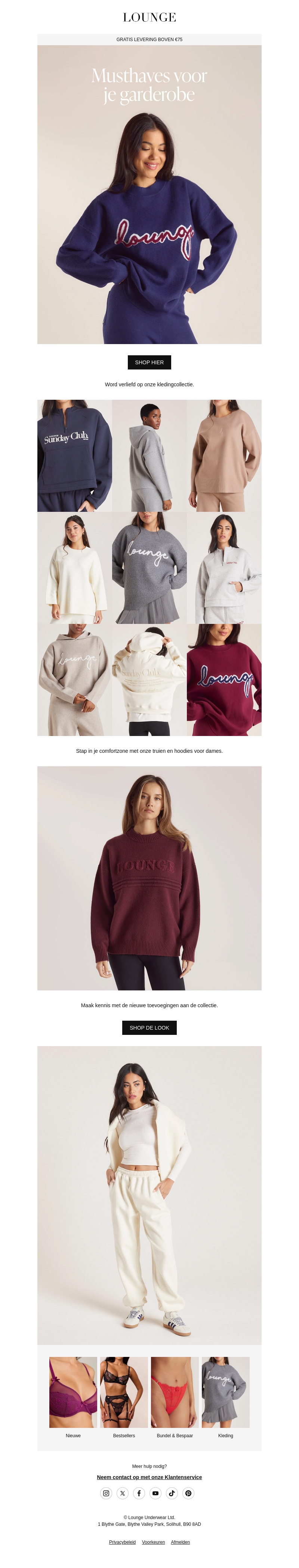 Stap in stijl met de nieuwste musthaves voor je garderobe van Lounge. Ontdek een veelzijdige collectie met comfortabele hoodies en stijlvolle sweats. Plus, geniet van gratis levering bij bestellingen boven €70. Ervaar de perfecte combinatie van stijl en comfort met onze nieuwste items. Mis het niet om jouw look compleet te maken.