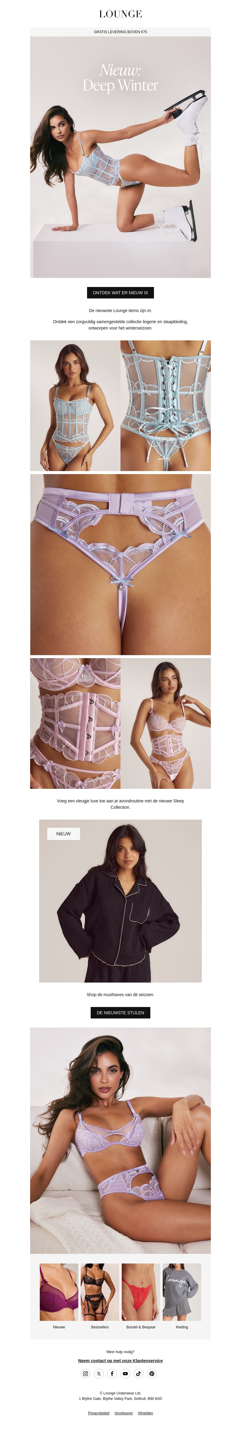 Verken de stijlvolle en elegante Deep Winter collectie van Lounge. Deze collectie biedt verfijnde ontwerpen met oog voor detail, perfect voor de moderne vrouw. Van verfijnde bustiers tot zachte pyjama's, ervaar comfort en mode in één. Maak je wintergarderobe compleet met deze tijdloze stukken. Ideaal om je stijl te upgraden dit seizoen.