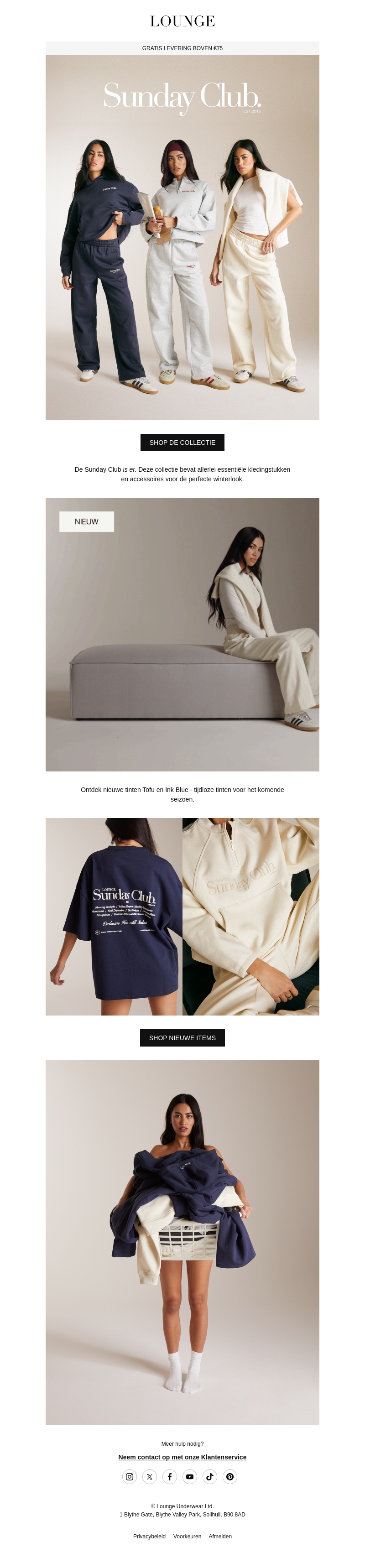 De Sunday Club collectie is gelanceerd en biedt stijlvolle, essentiële kledingstukken en accessoires. Gratis levering boven €75 maakt het nog aantrekkelijker. Ontdek nieuwe tinten zoals Tofu en Ink Blue voor de winter. Winkel nu om je garderobe te vernieuwen. Klik om de nieuwste items te bekijken en meer.
