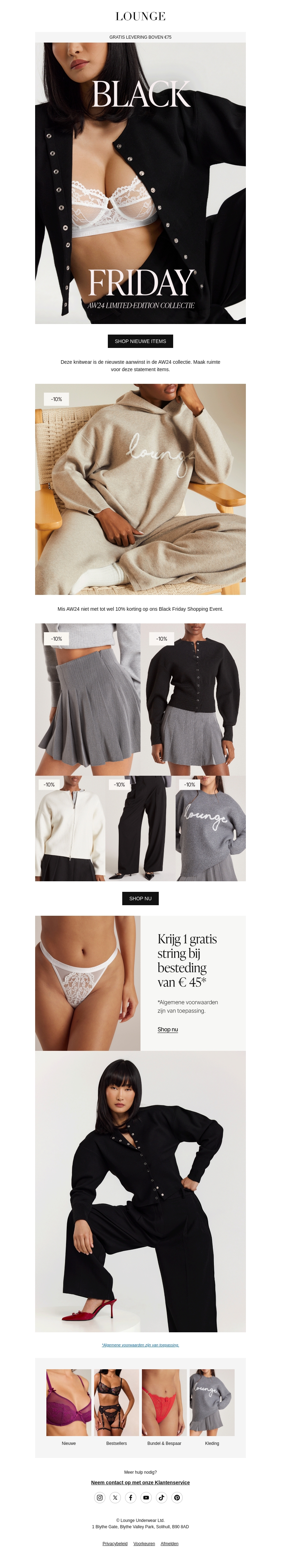 Lounge presenteert trots de nieuwe AW23 Limited Edition. Profiteer van geweldige kortingen tijdens het Black Friday Shopping Event. Ontdek stijlvolle en comfortabele kledingitems. Geniet van gratis verzending voor alle bestellingen. Koop nu en bespaar 20% tijdens deze speciale actie.