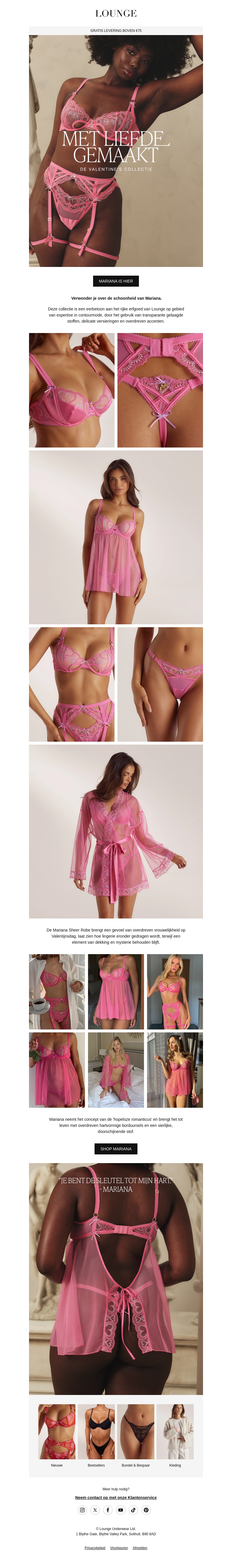 Verlies jezelf in de prachtige Mariana collectie van Lounge. Met liefde en precisie gemaakt, biedt deze collectie delicate ontwerpen in betoverende tinten. Geniet van verfijnde lingerie die zowel comfortabel als stijlvol is. Perfect voor speciale gelegenheden of dagelijks verwenmoment. Creëer je eigen verleidelijke look met de veelzijdige items van Mariana.