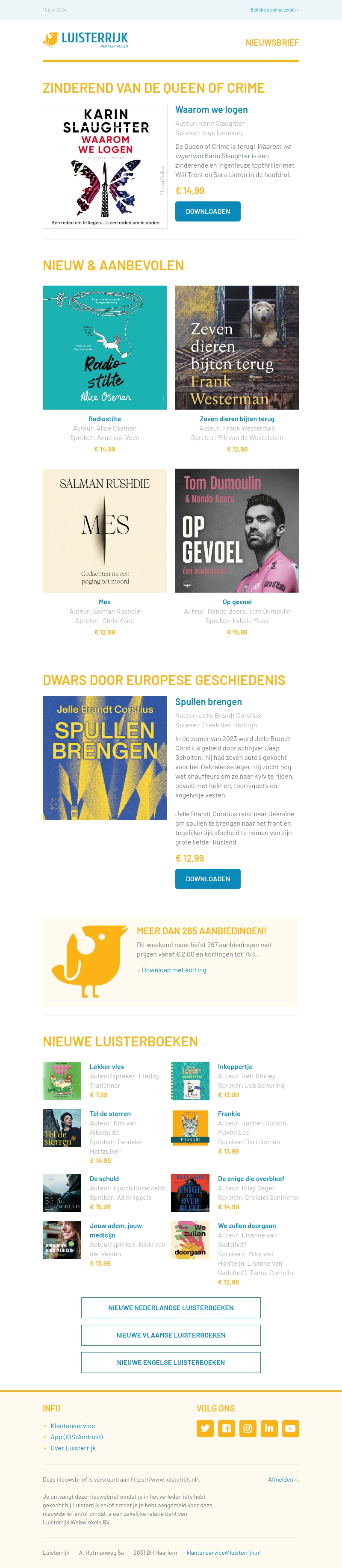 Deze nieuwsbrief brengt je de nieuwste titels van de Queen of Crime, Karin Slaughter, met 'Waarom we logen'. Ontdek tevens Salman Rushdie's commentaar over de moordaanslag op hem, een openhartig portret van Tom Dumoulin, en Jelle Brandt Corstius' reis naar Oekraïne.