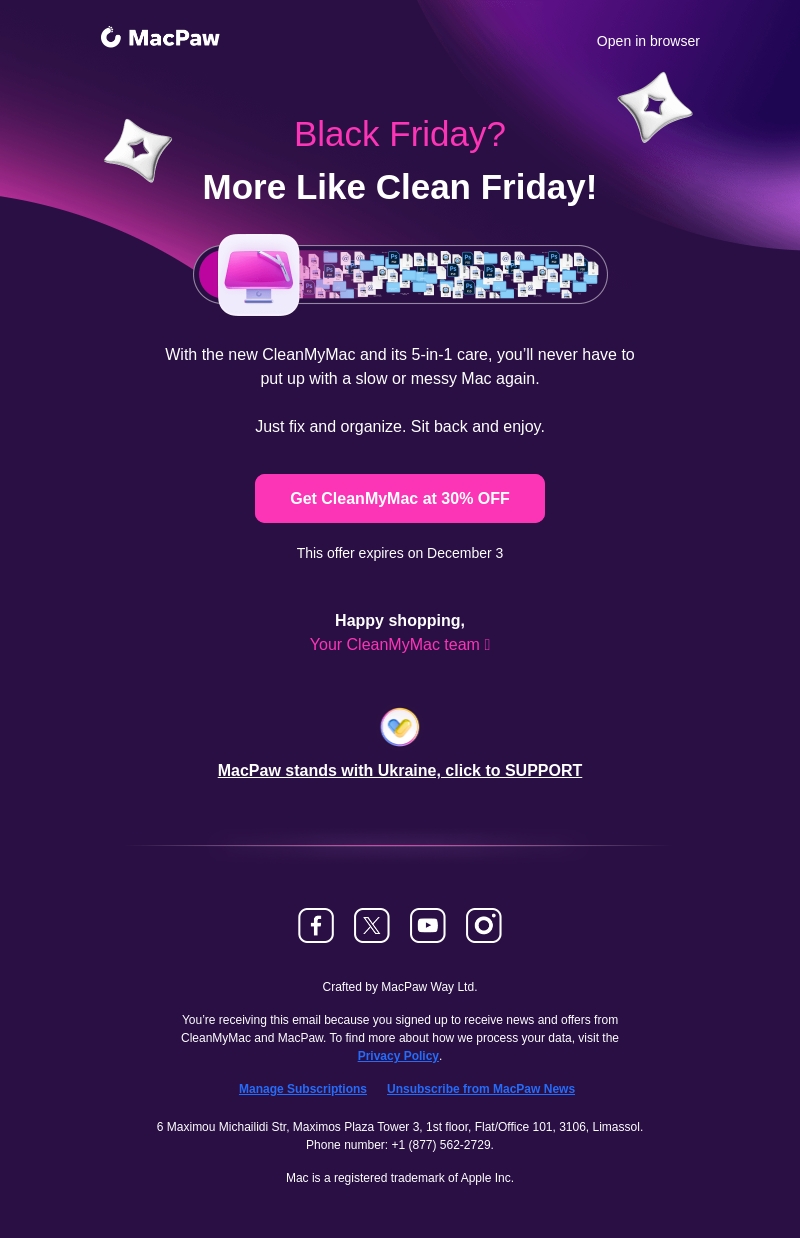 Deelname aan Schoonvrijdag en transformeer je Mac met CleanMyMac. Geniet van 30% korting en een opgeruimde digitale ruimte zonder gedoe. Deze aanbieding loopt tot 3 december, mis het niet!