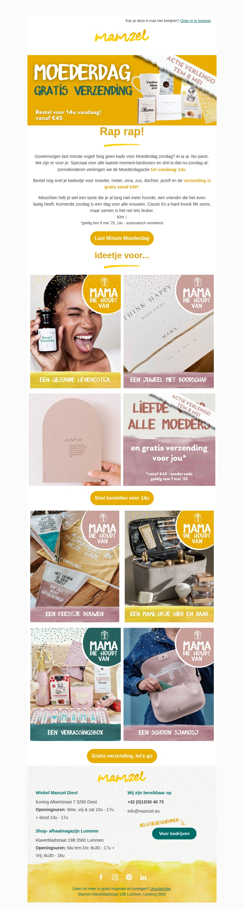 Laatste dag gratis verzending voor Moederdag, nu zondag 🥳