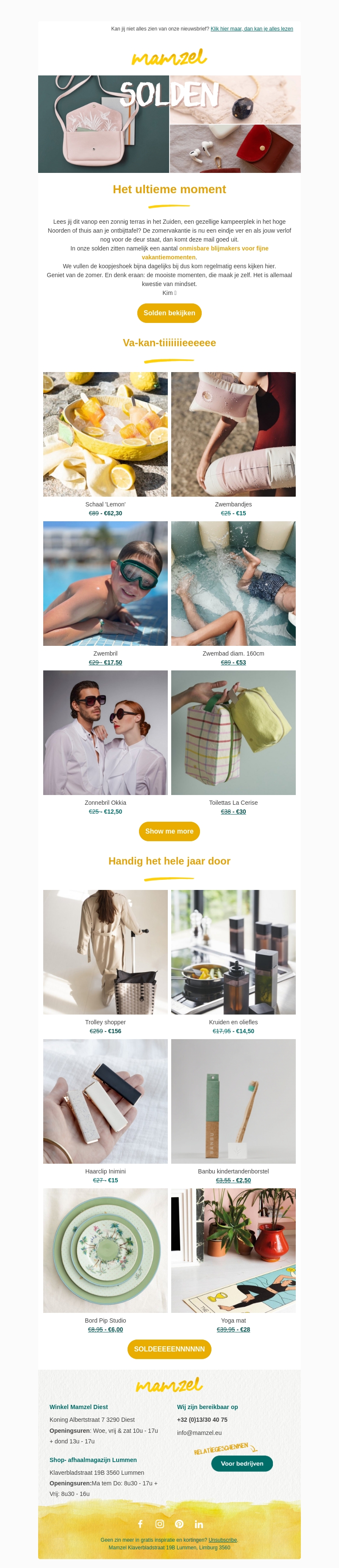 Mis de kans niet om te genieten van onze geweldige solden! Ontdek een scala aan producten zoals handtassen, beddengoed en juwelen met aantrekkelijke kortingen. Of het nu voor de zomer is of handig het hele jaar door, we hebben voor elk wat wils. Bekijk nu de aanbiedingen en maak je klaar om jezelf te verwennen!