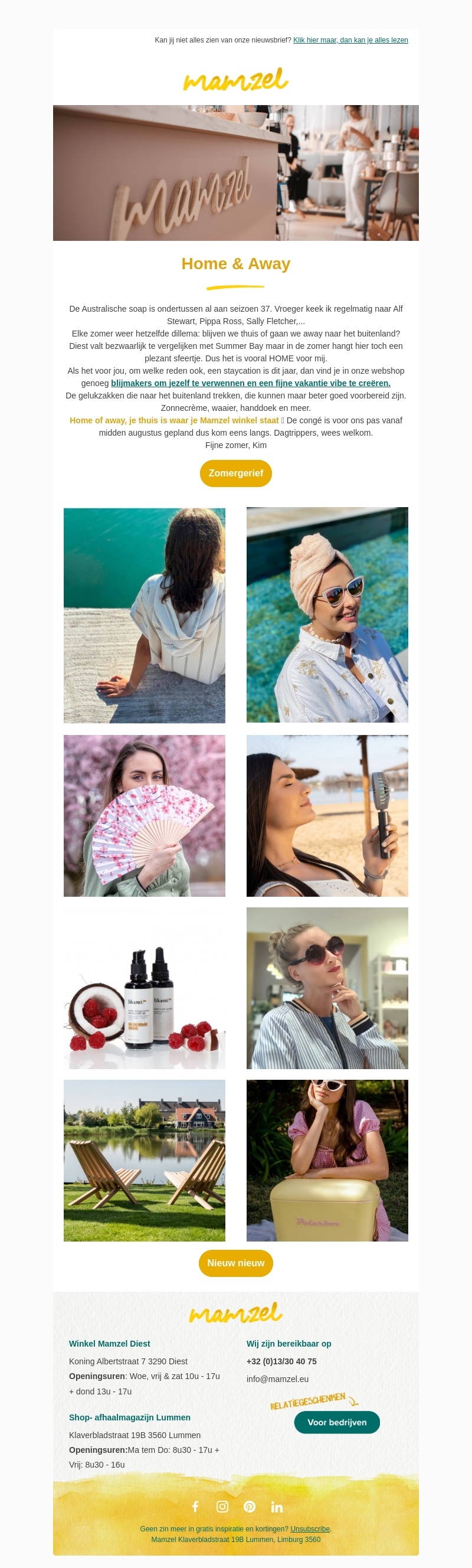 Verken de zomer met Mamzel! Of je nu thuisblijft voor een staycation of naar het buitenland gaat voor een vakantie, wij hebben de perfecte producten voor jou. Van zonnecrème tot handdoeken, bereid je voor op een geweldige zomer met onze uitgebreide collectie. Kom langs in onze winkel en ontdek alles wat je nodig hebt.