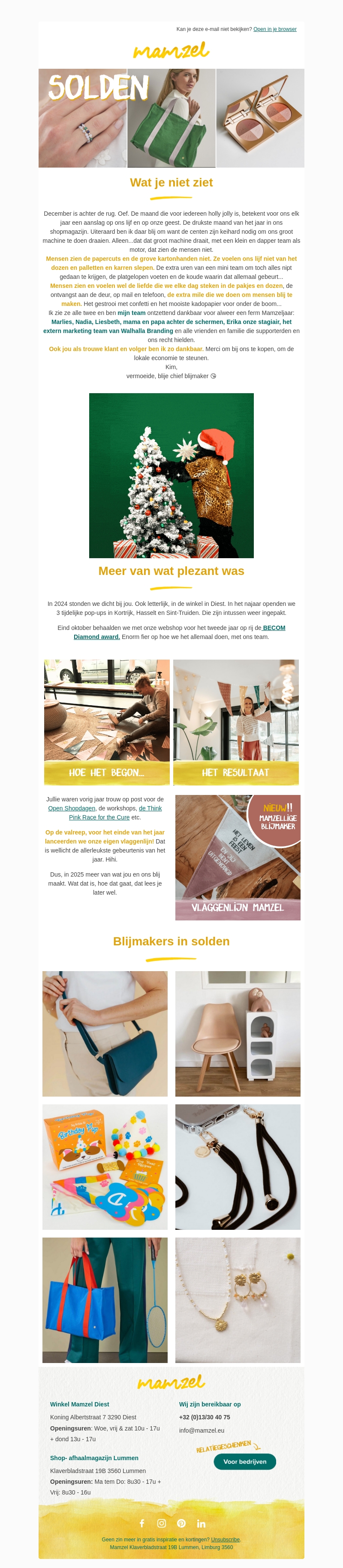 Mamzel nodigt je uit om jezelf te verwennen met liefde, warmte en gemoedsrust. Ontdek onze exclusieve kortingen en unieke producten die je blij zullen maken. Lees over onze successen van het afgelopen jaar en zie wat er nieuw is in onze collectie. Wees klaar om iets bijzonders te ervaren met Mamzel.