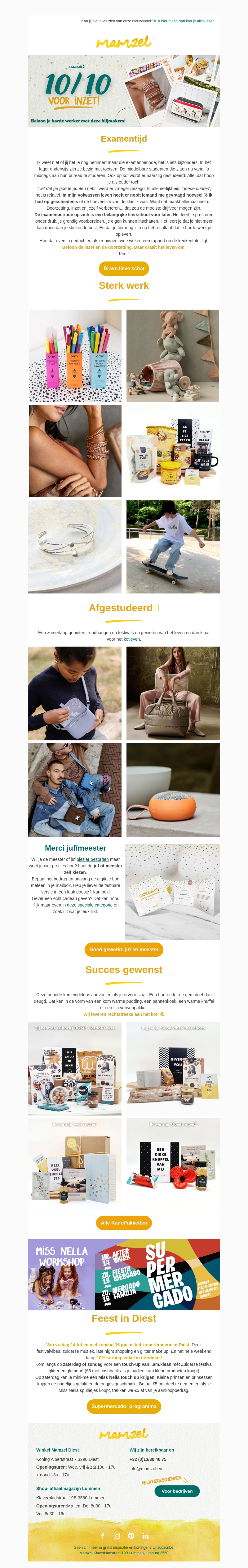 Mamzel biedt geweldige cadeautjes aan voor harde werkers en recent afgestudeerden. Van unieke schrijfwaren tot mooie sieraden, alles om jouw inspanningen te belonen. Ontdek ook de speciale bedankjes voor leraren en meesters. Vier deze speciale momenten met de perfecte verrassing van Mamzel.